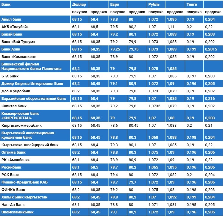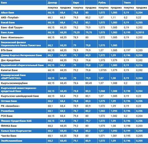 Курс доллара в коммерческих банках Кыргызстана на 19 июня