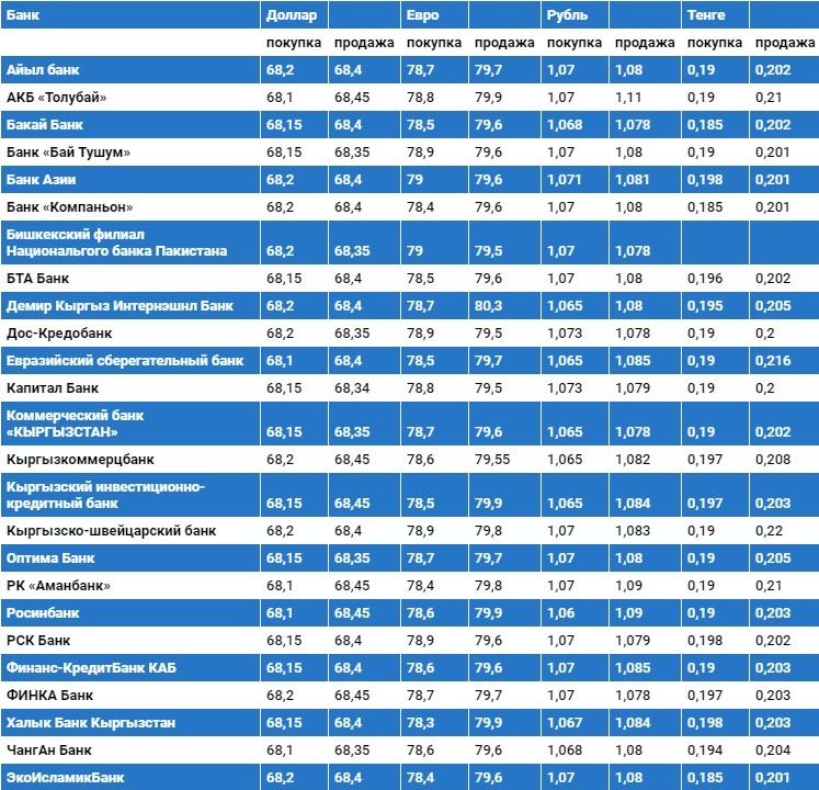 Курс доллара в коммерческих банках Кыргызстана на 21 июня