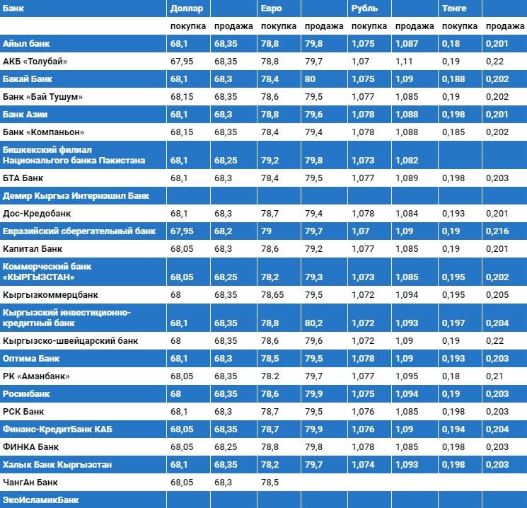 Курс доллара в коммерческих банках Кыргызстана на 28 июня