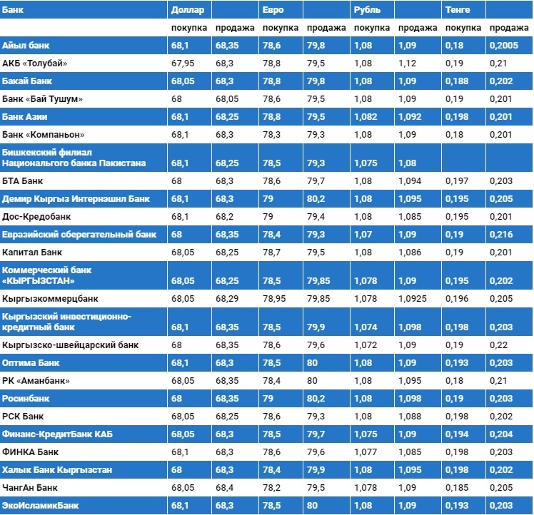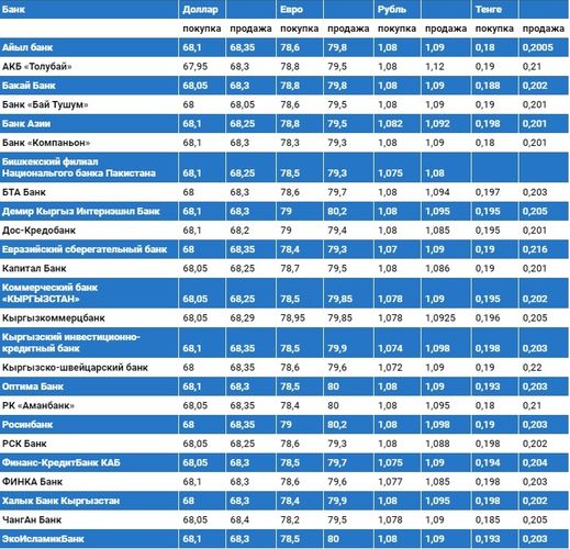 Курс доллара в коммерческих банках Кыргызстана на 29 июня