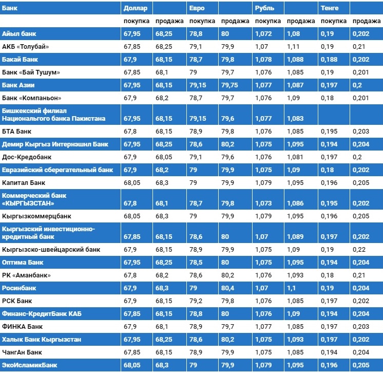 Курс доллара в коммерческих банках Кыргызстана на 2 июля