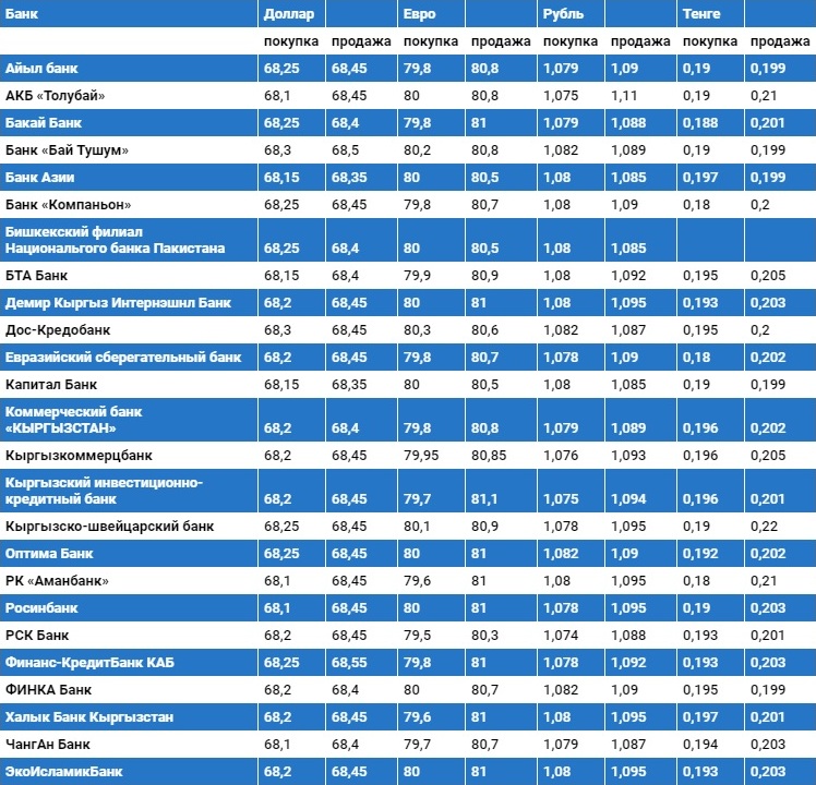 Курс доллара в коммерческих банках Кыргызстана на 9 июля