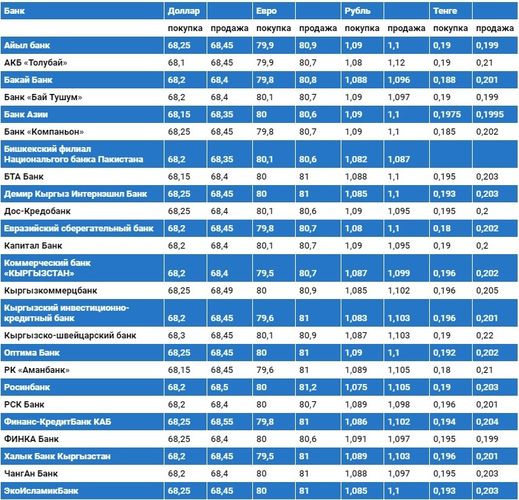 Курс доллара в коммерческих банках Кыргызстана на 10 июля