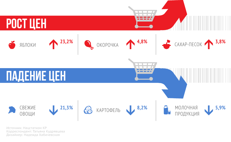 Наибольший прирост (3,1 процента) потребительских цен и тарифов в первом полугодии зафиксирован в Нарынской области. Это связано в основном с ростом цен на пищевые продукты и безалкогольные напитки. При этом в январе-июне наблюдалось снижение цен в Баткенской (на 3,6 процента) и Джалал-Абадской (на 0,1 процента) областях, городах Бишкеке (на 0,3 процента) и Оше (на 0,6 процента).