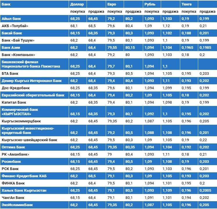 Курс доллара в коммерческих банках Кыргызстана на 13 июля