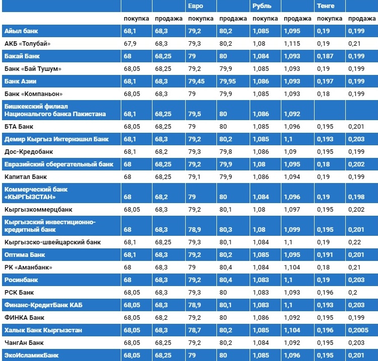 Курс доллара в коммерческих банках Кыргызстана на 18 июля