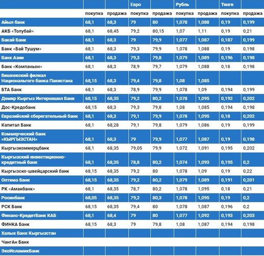 Курс доллара в коммерческих банках Кыргызстана на 19 июля