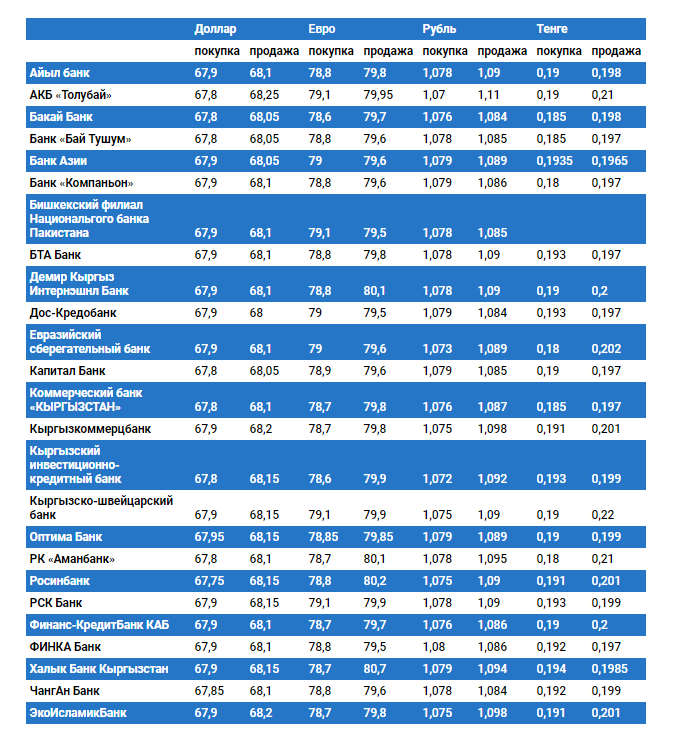 Курс доллара в коммерческих банках Кыргызстана на 30 июля