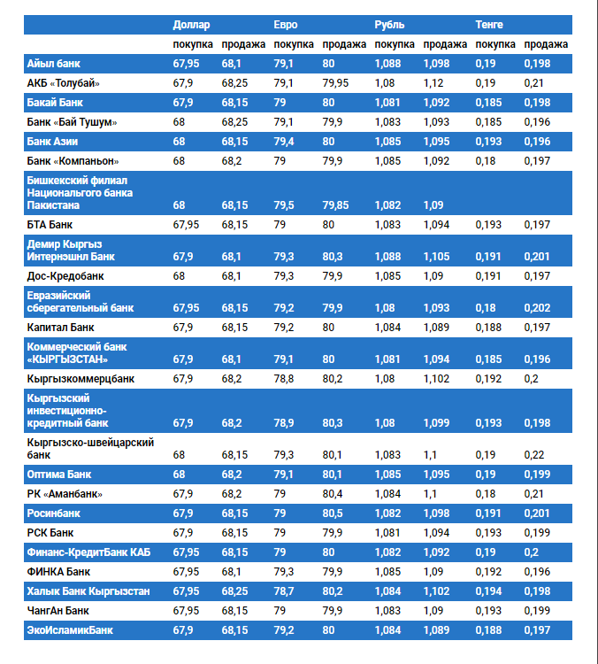 Курс доллара в коммерческих банках Кыргызстана на 1 августа