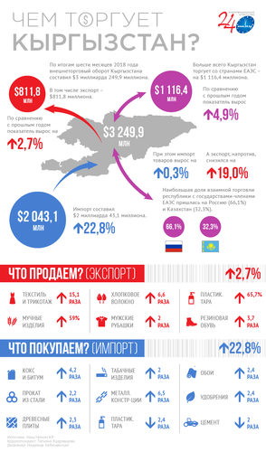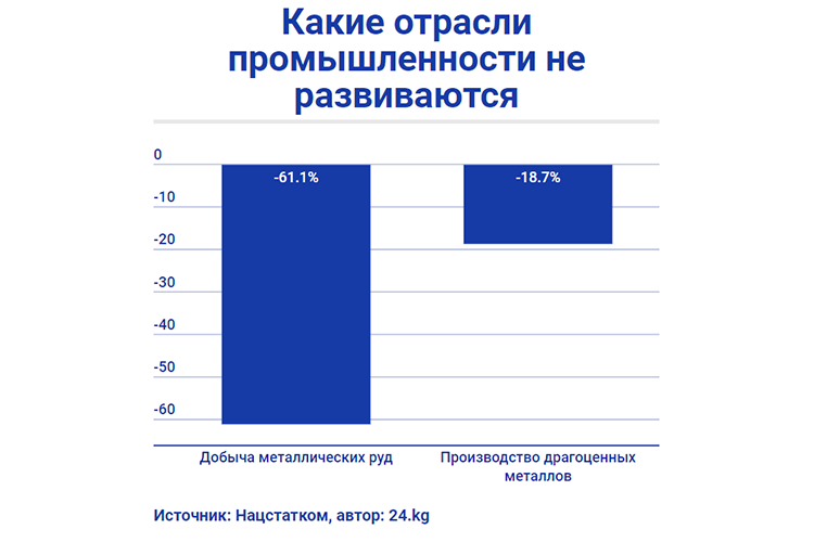 Показатели в промышленном секторе тоже не очень радуют и напрямую связаны с показателями крупнейшего золотодобывающего предприятия страны. Так, по итогам семи месяцев 2018 года промышленной продукции в Кыргызстане выпустили на 126 миллиардов 555,2 миллиона сомов. Это на 8,6 процента меньше показателя 2017-го.