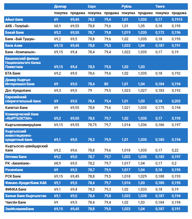 Курс доллара в коммерческих банках Кыргызстана на 14 августа