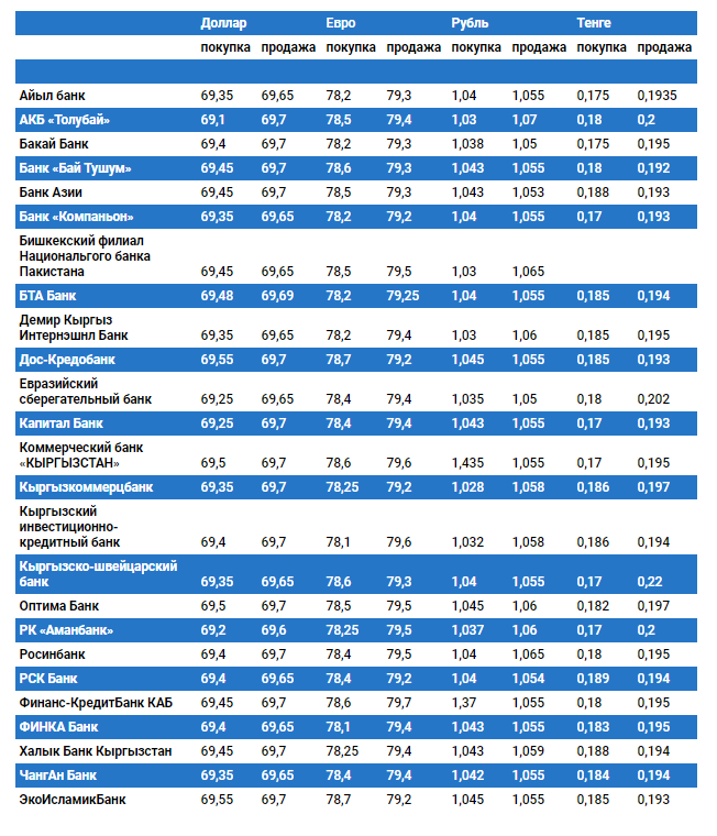 Курс доллара в коммерческих банках Кыргызстана на 15 августа