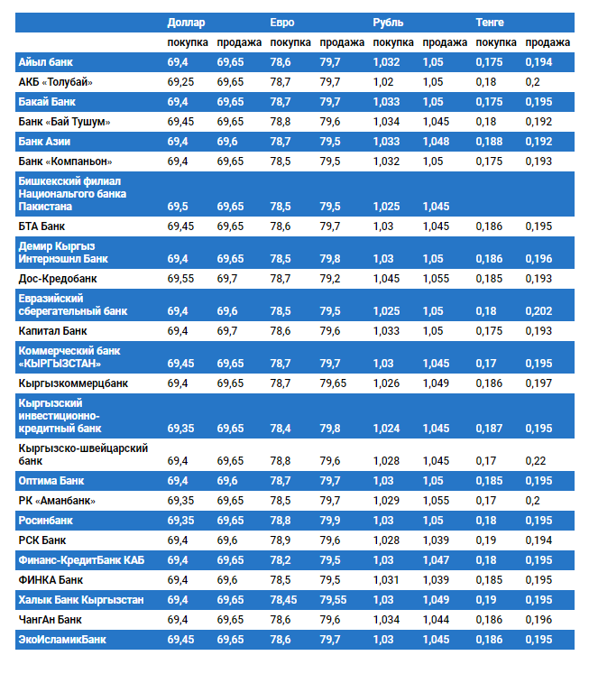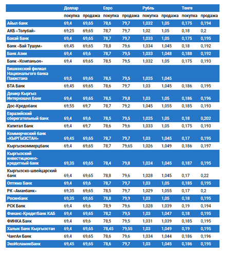 Курс доллара в коммерческих банках Кыргызстана на 16 августа