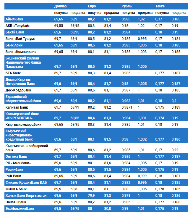 Курс доллара в коммерческих банках Кыргызстана на 11 сентября