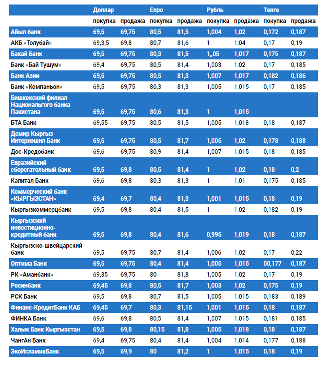 Курс доллара в коммерческих банках Кыргызстана на 13 сентября