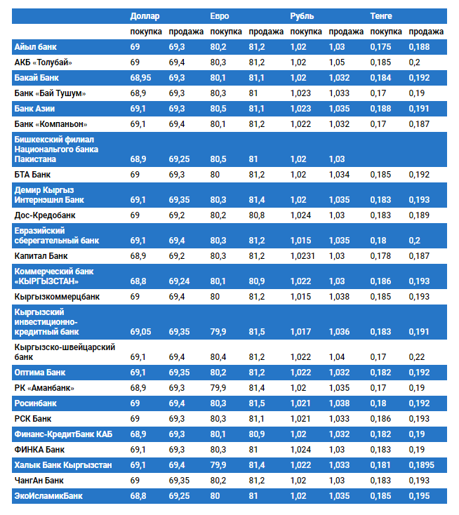 Курс доллара в коммерческих банках Кыргызстана на 19 сентября