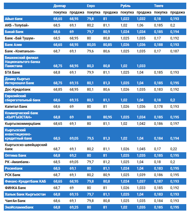 Курс доллара в коммерческих банках Кыргызстана на 20 сентября