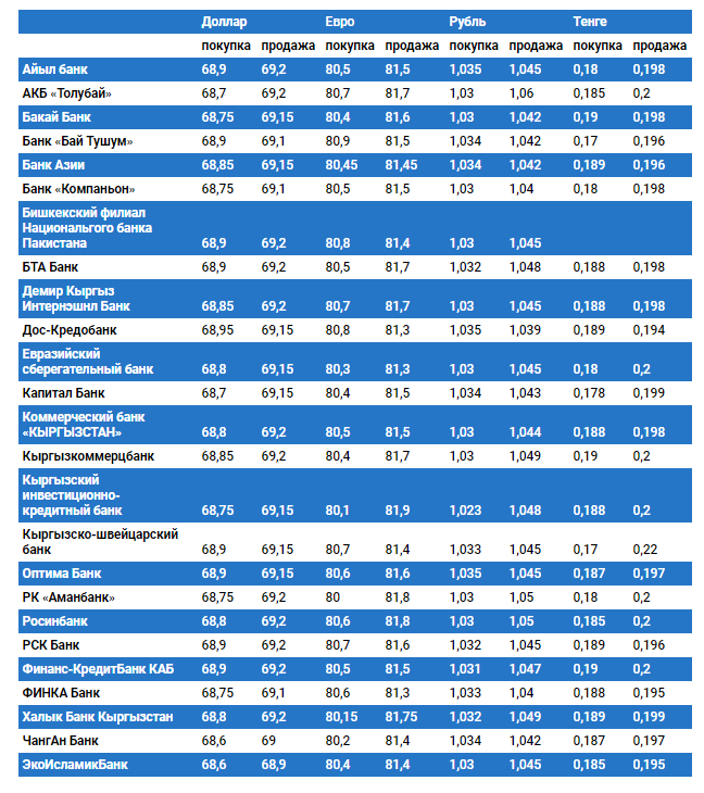 Курс доллара в коммерческих банках Кыргызстана на 22 сентября