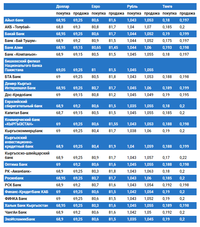 Курс доллара в коммерческих банках Кыргызстана на 25 сентября