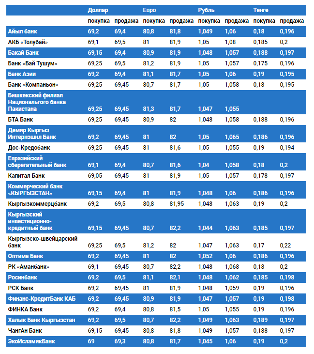 Курс доллара в коммерческих банках Кыргызстана на 27 сентября
