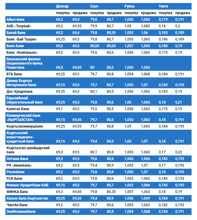Курс доллара в коммерческих банках Кыргызстана на 17 октября