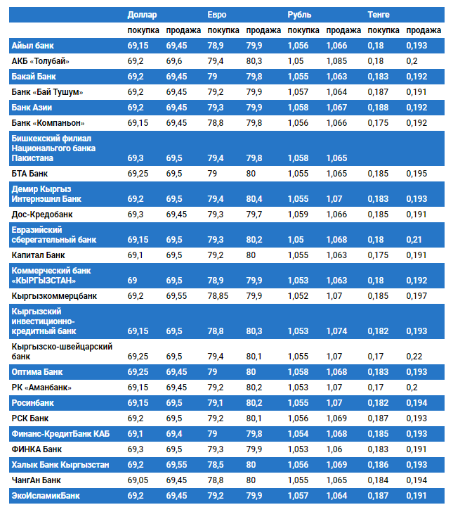 Курс доллара в коммерческих банках Кыргызстана на 23 октября