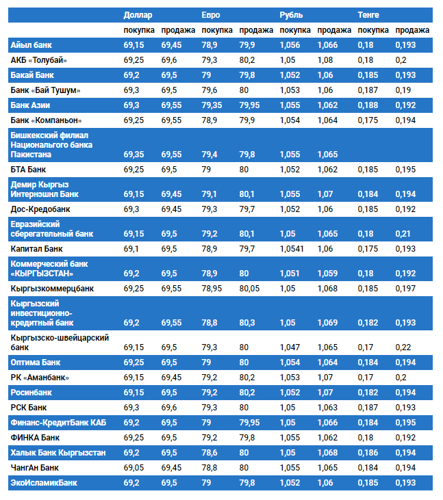 Курс доллара в коммерческих банках Кыргызстана на 25 октября