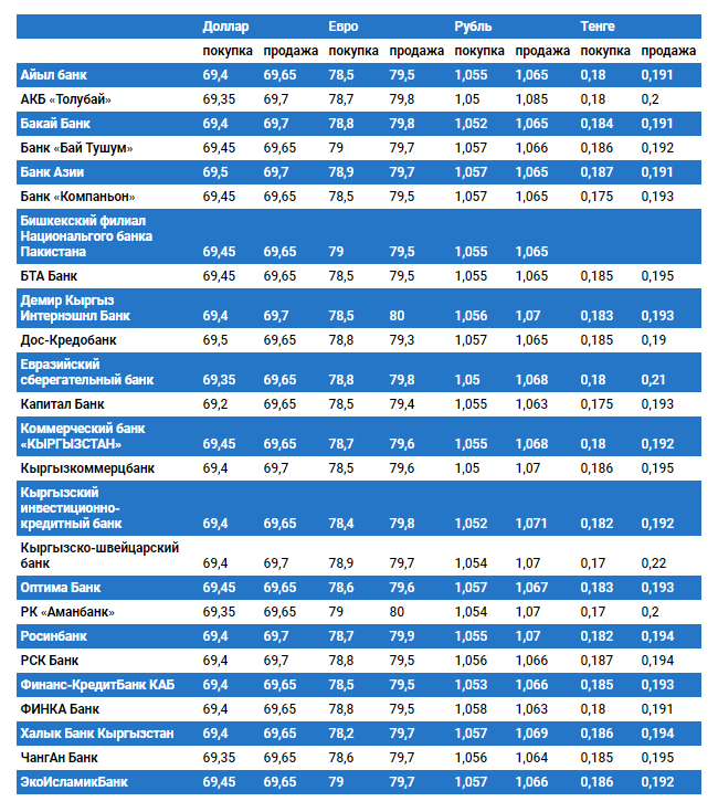 Курс доллара в коммерческих банках Кыргызстана на 29 октября