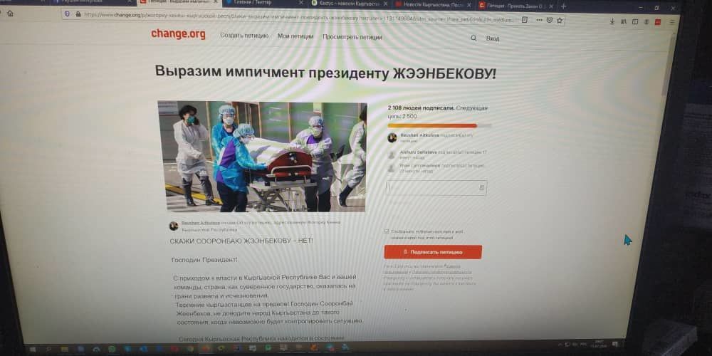 One of the last was a petition for resignation of the President of Kyrgyzstan Sooronbai Jeenbekov.