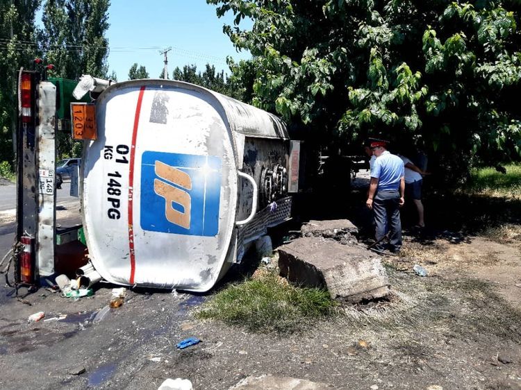A fuel truck overturned on Bishkek — Osh highway. Press service of the Ministry of Emergencies of Kyrgyzstan reported.