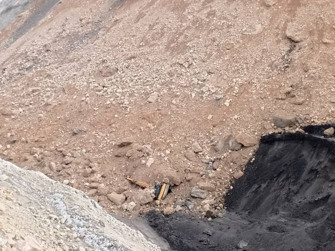 A rock mass collapsed at Kara-Keche field, covering an excavator of a private company. The Ministry of Emergency Situations of Kyrgyzstan reported.