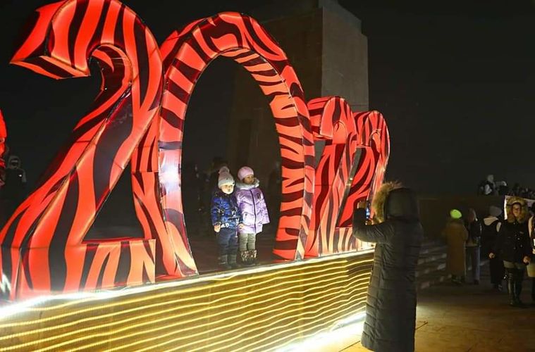 A New Year tree was lit up on the central square of Osh city. Press service of the City Hall of Osh reported.