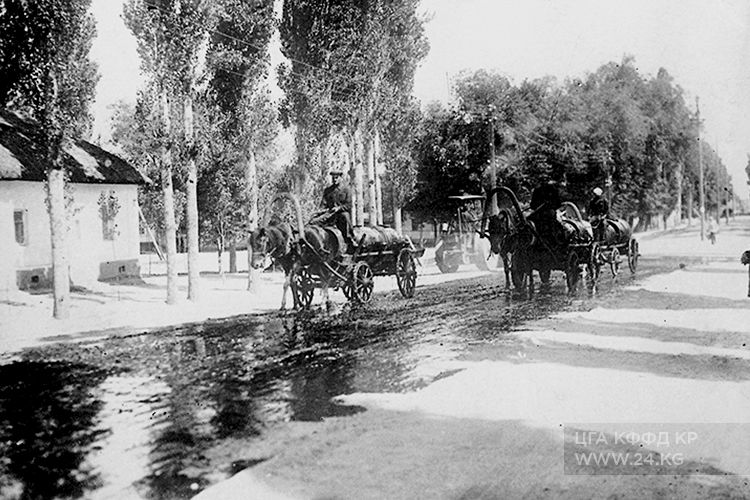 The plan for the design location of Pishpek with European-style buildings was approved on August 31, 1878. The street network was planned in a checkerboard pattern for construction of irrigation ditch network and natural ventilation of the city. Some of the buildings were made of wood. Despite the semi-desert, the residents planted gardens and parks.