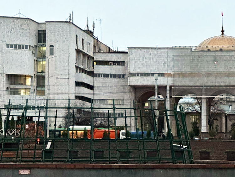 A metal frame is being installed in place of the central fountain on Ala-Too square.