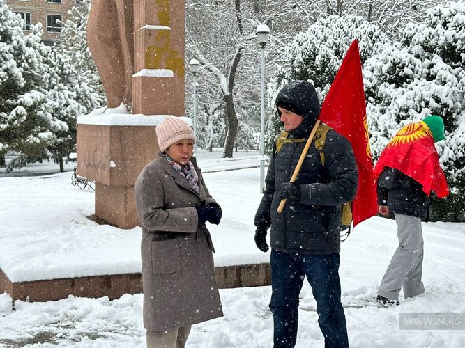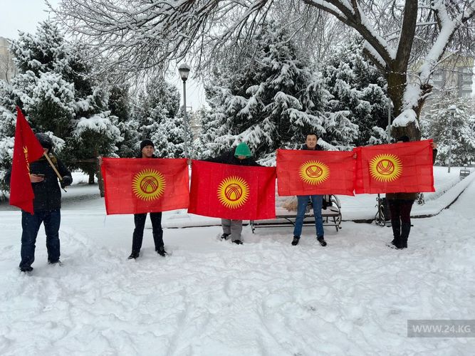 A protest against changing the state flag is taking place in the park near Gorky monument in Bishkek. Despite the arrest of its organizer, activist Aftandil Zhorobekov, it is still held.