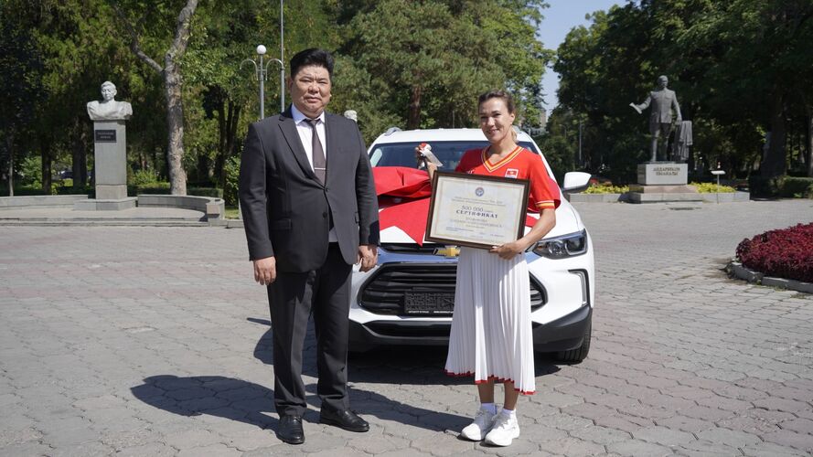 The athlete received a certificate for 500,000 soms and the keys to a Chevrolet Tracker.