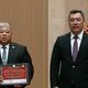 Sadyr Japarov awarded the site manager of Inshaat Stroy Building LLC Muratbek Asanov and the Executive Director of this company Altynbek Kozuyev for a significant contribution to the construction of the new building of the presidential administration Yntymak Ordo with Dank medal.