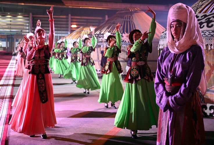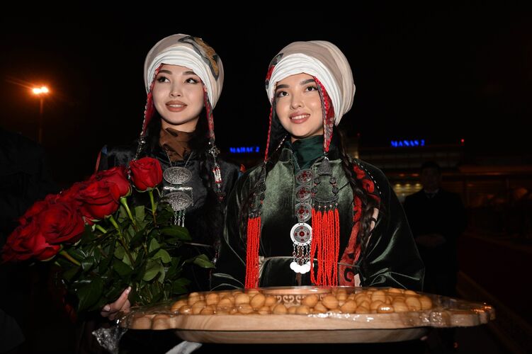 Flags of the two countries were hung on flagpoles, a carpet was laid out, an installation in the form of a national yurt was set up, and an honor guard was lined up.
