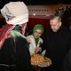 Girls in national costumes, greeting Recep Tayyip Erdogan, presented him with flowers, boorsoks and honey.