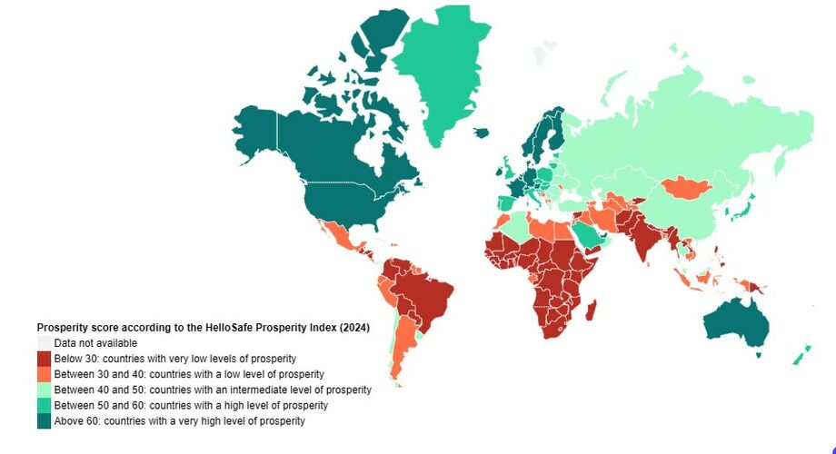 HelloSafe Prosperity Index is based on data from the World Bank and the UN on six key indicators: GDP per capita, gross national income per capita, gross national savings rate, Human Development Index, Gini coefficient (measures income inequality in society) and poverty rate.
