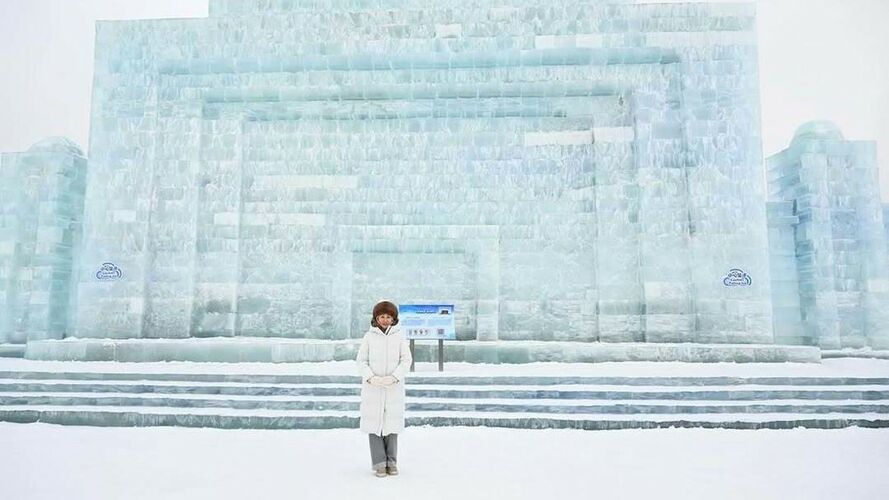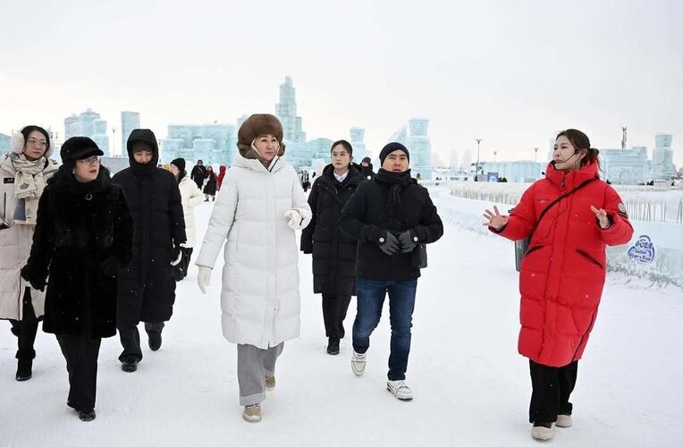 The First Lady of Kyrgyzstan Aigul Japarova and the Ambassador Extraordinary and Plenipotentiary of China to the Kyrgyz Republic Liu Jiangping visited the Harbin Ice and Snow Sculpture Festival.