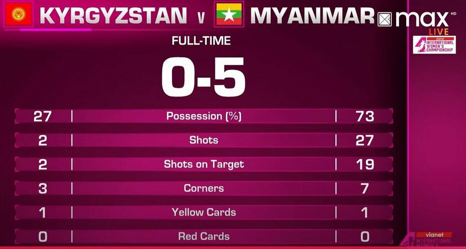 The match with the team from Myanmar ended with a score 5:0 in favor of the opponents.