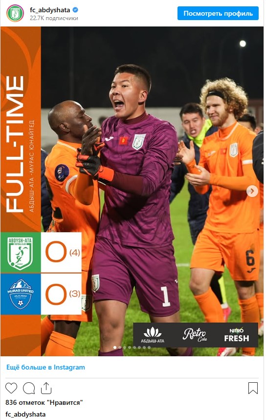 Abdysh-Ata Football Club has won the Football Super Cup of Kyrgyzstan. The match took place on March 1 in Kant town. The team’s Instagram account reports.
