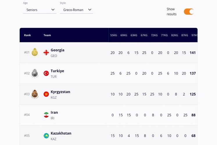 The Greco-Roman wrestling team of Kyrgyzstan took the third place in the overall standings.