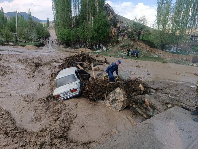 According to the ministry, the flood was caused by rain and hail that fell in Ak-Taylak village in Jalal-Abad region.