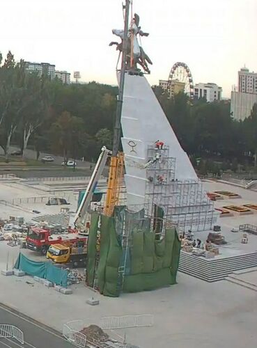 A new monument to Manas is being installed on Ala-Too Square in Bishkek, as confirmed by live camera footage.