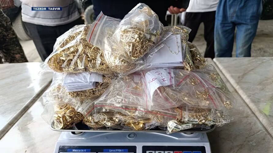 Two residents of Fergana district, aged 34 and 32, were detained after illegally crossing the state border and bringing in 19 kilograms and 119 grams of gold jewelry from Kyrgyzstan. The estimated value of the seized items is 20 billion Uzbek sums.