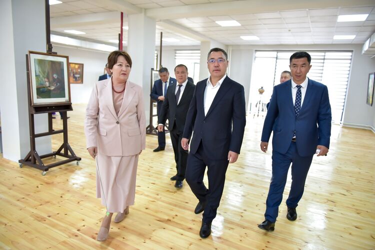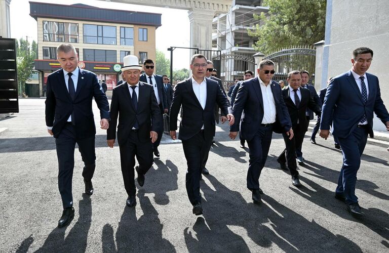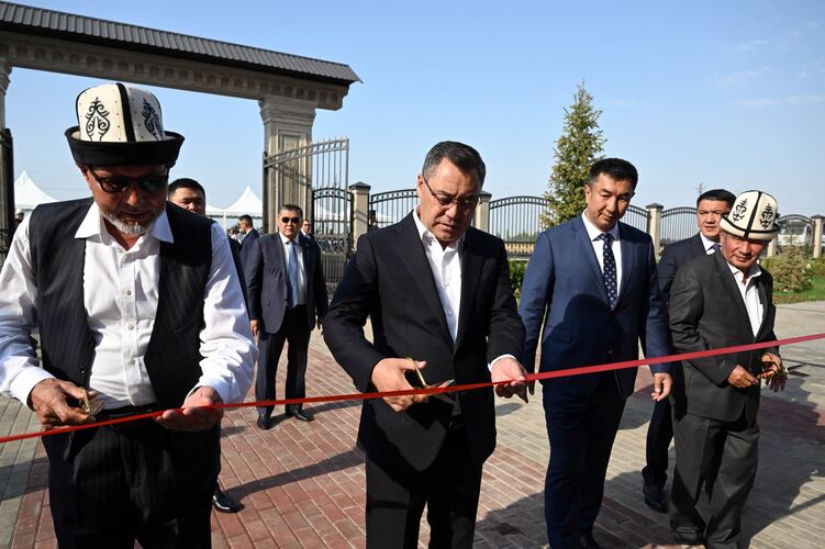 Early in the morning, the head of state opened a new school named after Nyshanbai Alykulov in the village of Min-Oruk in Jalal-Abad region. Previously, the school consisted of two buildings. In 1890, one of the buildings was constructed as a 10-room building. Since 1928, it has been re-equipped and used as a school with 10 classrooms.