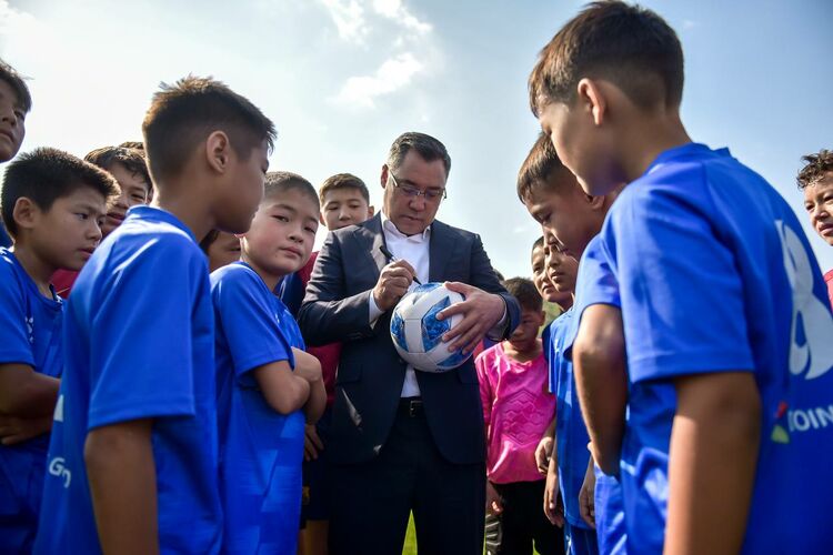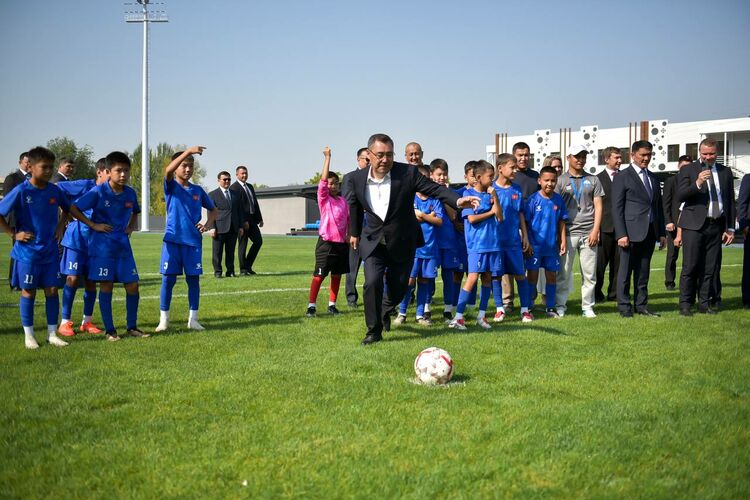 The head of state did not ignore the new building of the training complex of Muras United Football Club, located in Jalal-Abad. It combines modern sports, educational and household facilities necessary for the preparation of athletes. It includes training and living quarters, locker rooms, a swimming pool, a gym, as well as a stand for spectators and a hybrid football field.