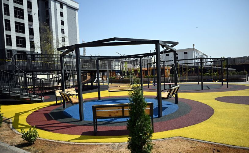 Sadyr Japarov got acquainted with the completion of the construction of the residential complex Asman Residence-3 on Zheni-Zhok Street. The construction of a nine-story building with 135 apartments began in March 2024. The basement provides storage rooms and a parking area. The facade of the building is made of yellow stone and porcelain stoneware. The territory of the residential complex is landscaped and improved.